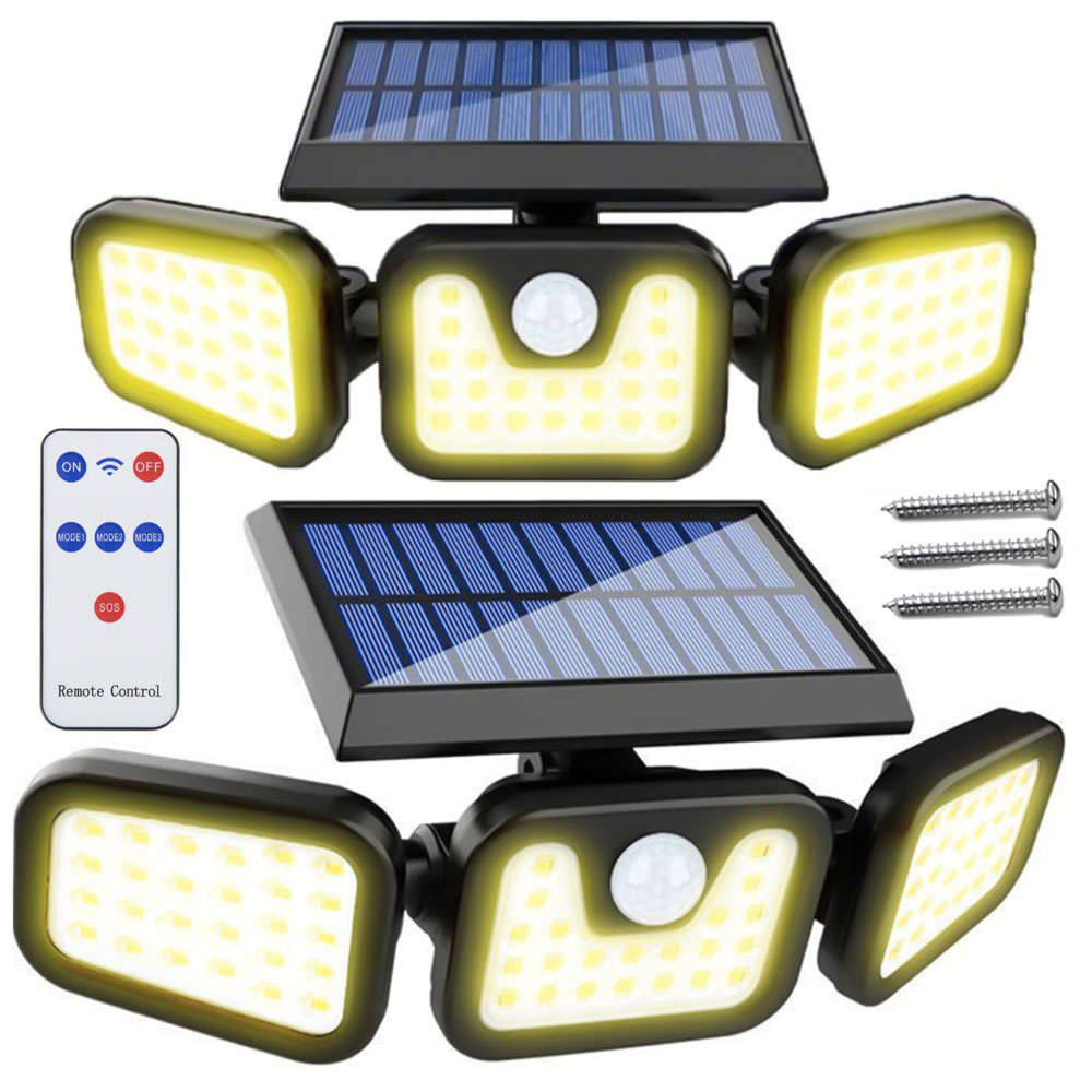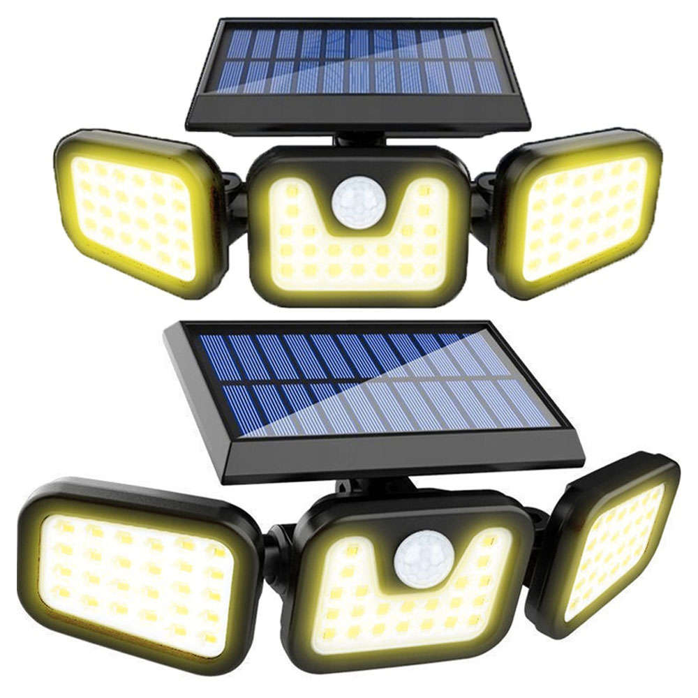 couleur noirematière : ABSQuantité de LED : 120 COBétanche : IP67portée du détecteur de mouvement : 5mbatterie : 2 x 1200mahtemps de travail : printemps été : 6-8 h ; hiver : 8-10 heurestension : 5Vpuissance nominale : 36Wconsommation d'énergie : 1 Kwhréglage de l'angle du panneau solaire : haut, bas et 360réglage de l'angle d'inclinaison de la lampe : haut, bas et 360longueur du câble : 5mhauteur totale du panneau : 14cmdimensions du panneau : 11,5 x 13 x 1 cmhauteur totale de la lampe : 14 cmdimensions de la lampe (largeur / hauteur) : 11 x 15 x 2 cmpoids : 0,401 kgpoids dans l'emballage : 0,461 kgINCLUS