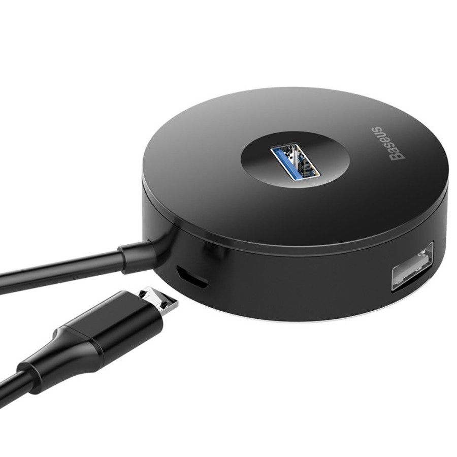 Rozdzielacz HUB 1m USB / Typ C na 3x USB 2.0 + 1x USB 3.0 + Zasilanie Micro USB Baseus Round Box Adapter (CAHUB-GA01) czarny #67754-uniw