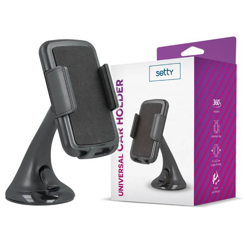 Uchwyt Samochodowy Uniwesalny na Deskę / Szybę do Auta Regulowany U16 SETTY czarny #78808-uniw