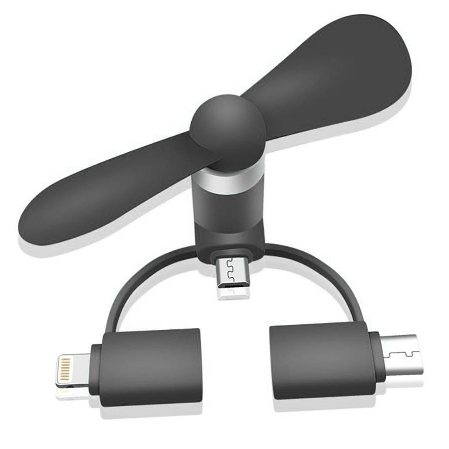 Wiatrak do Telefonu Uniwersalny (Micro USB + Lightning + USB-C) Wiatraczek Wentylator czarny #73092-uniw