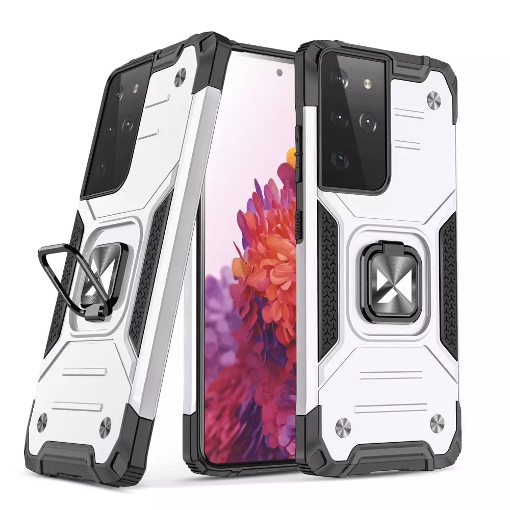 Wozinsky Ring Armor coque hybride robuste + support magnétique pour Samsung Galaxy S22 Ultra argent #56298-uniw