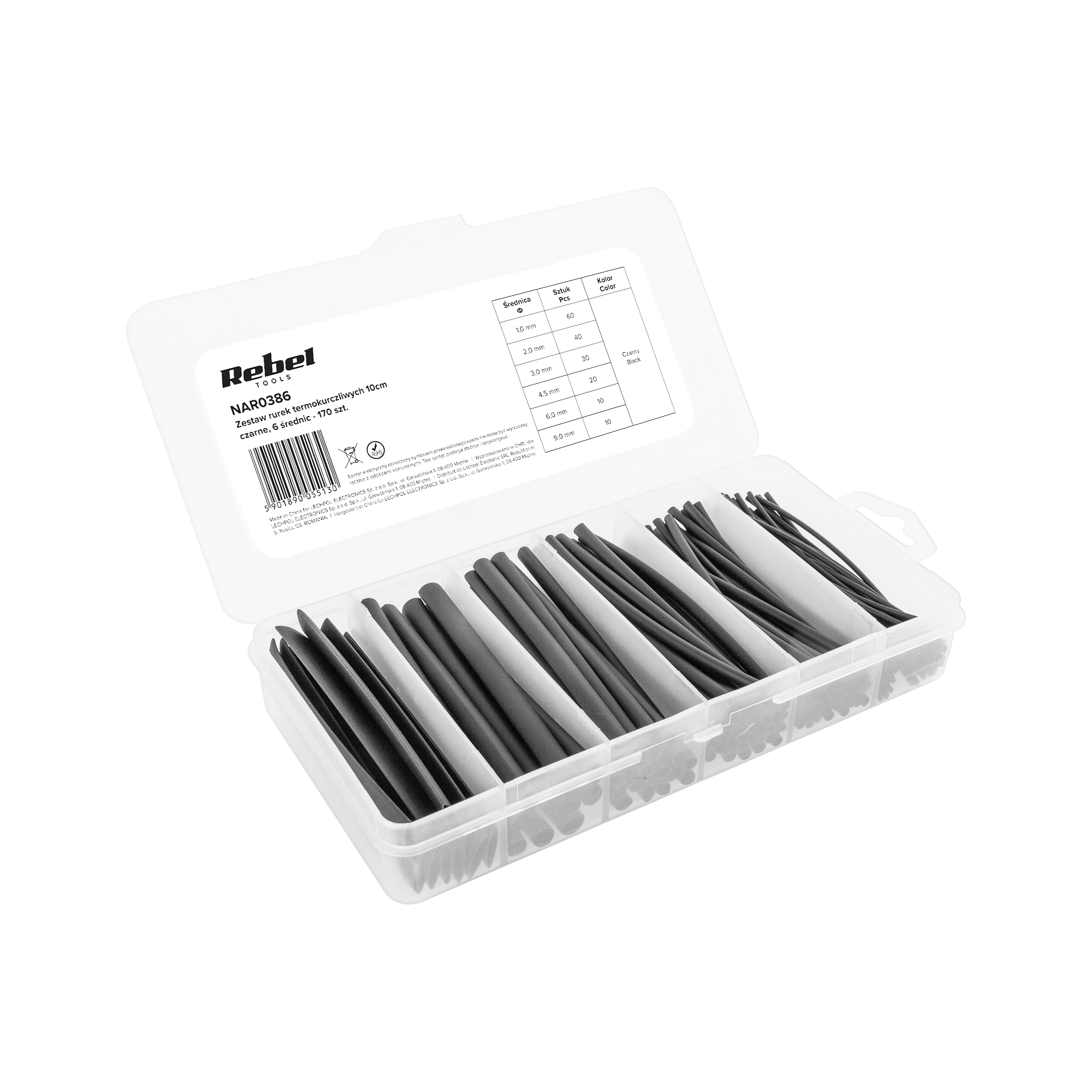 W skład zestawu wchodzą następujące rurki termokurczliwe o długości 100 mm:
